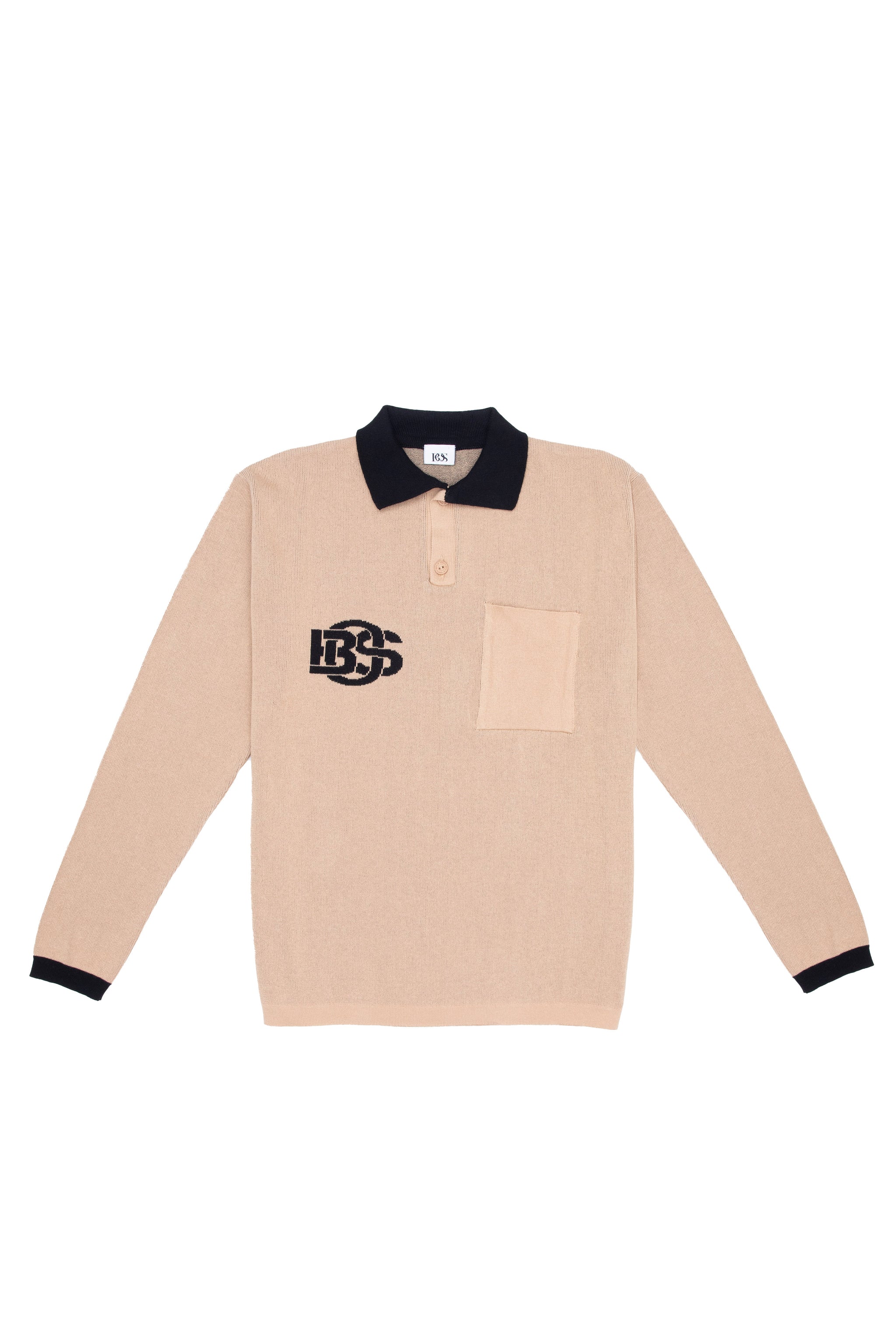 Retro Long Sleeve Golf T-Shirt - Beige & Black